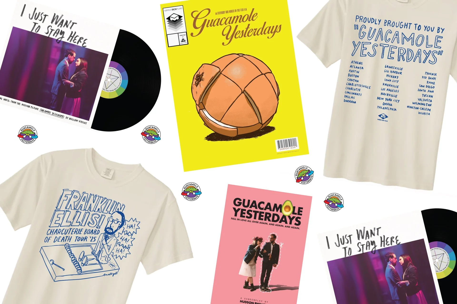 Limited-edition shirts, records, and collectibles as seen on the Guacamole Yesterdays Theatrical Tour.